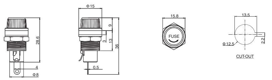 保險絲座FH系列,保險管座常見于PCB固定和螺母固定兩種方式,電流10-30A不等,配置的保險管5*20mm和6*30mm,擁有UL CE CQC認證,廣泛用于汽車行業(yè),家電等