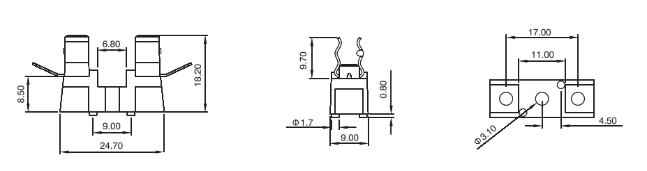 保險絲座FH系列,保險管座常見于PCB固定和螺母固定兩種方式,電流10-30A不等,配置的保險管5*20mm和6*30mm,擁有UL CE CQC認證,廣泛用于汽車行業(yè),家電等